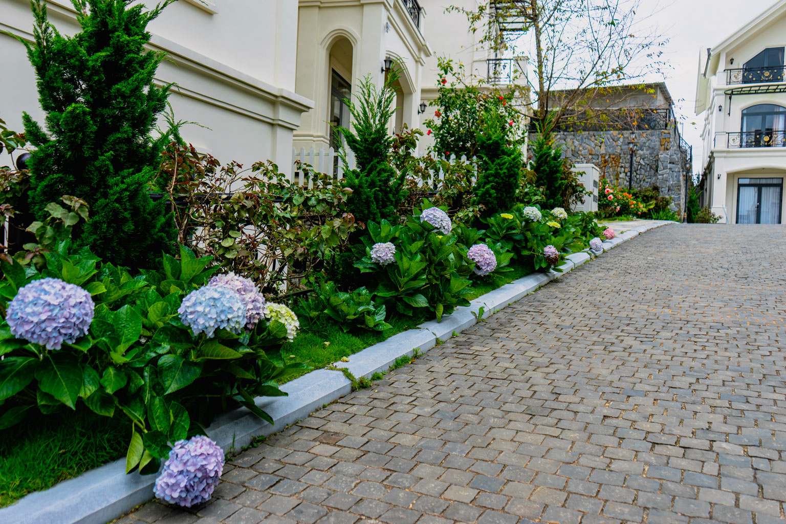 Một trong những điểm nổi bật nhất của Villa Măng Lin chính là khu vườn rộng bao quanh villa, phủ đầy hoa và cây xanh.