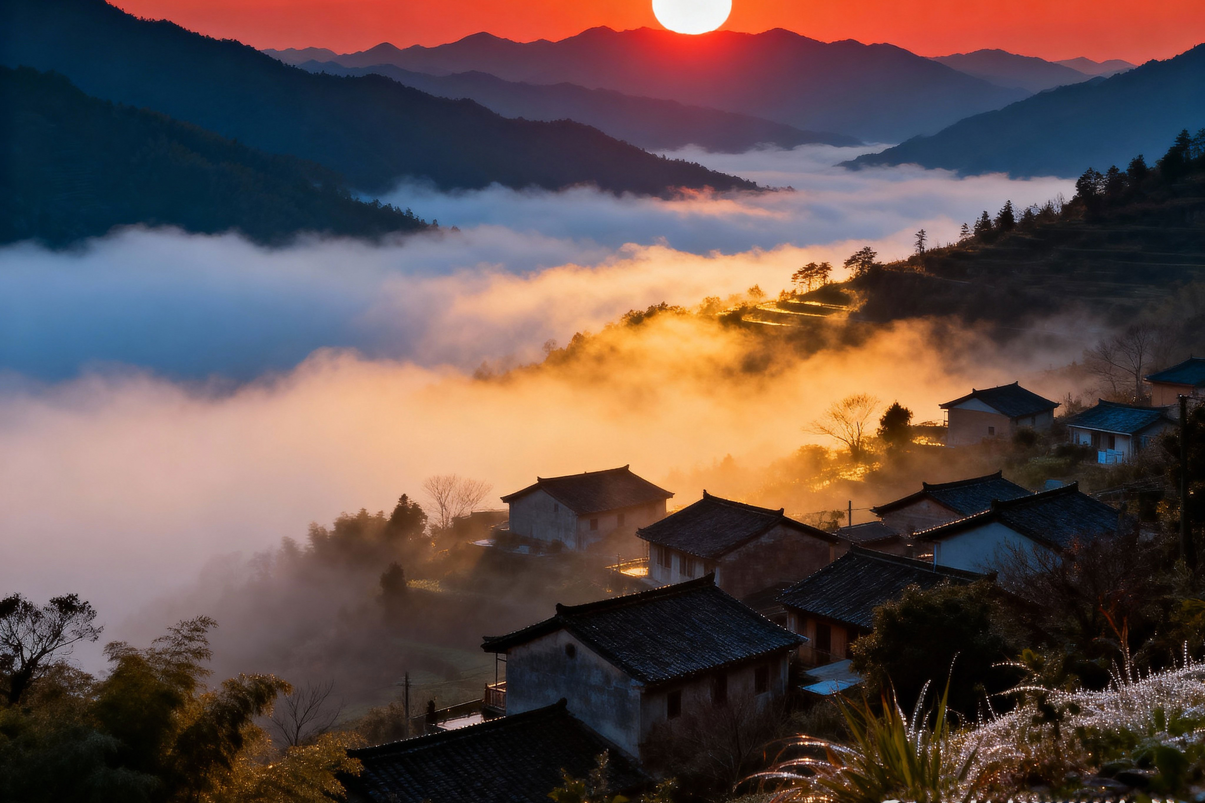 Morning: Wake up to sunlight filtering through pine branches, sip a hot cup of tea on the balcony, and watch the mist drift lazily over the valley.